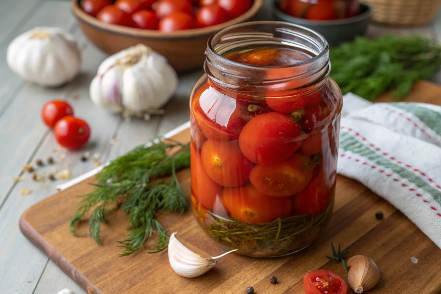 Залийте помідори розсолом так, щоб вони були повністю покриті. Накрийте кришкою або марлею. Залиште при кімнатній температурі 3–5 днів, після чого перенесіть у прохолодне місце або холодильник.